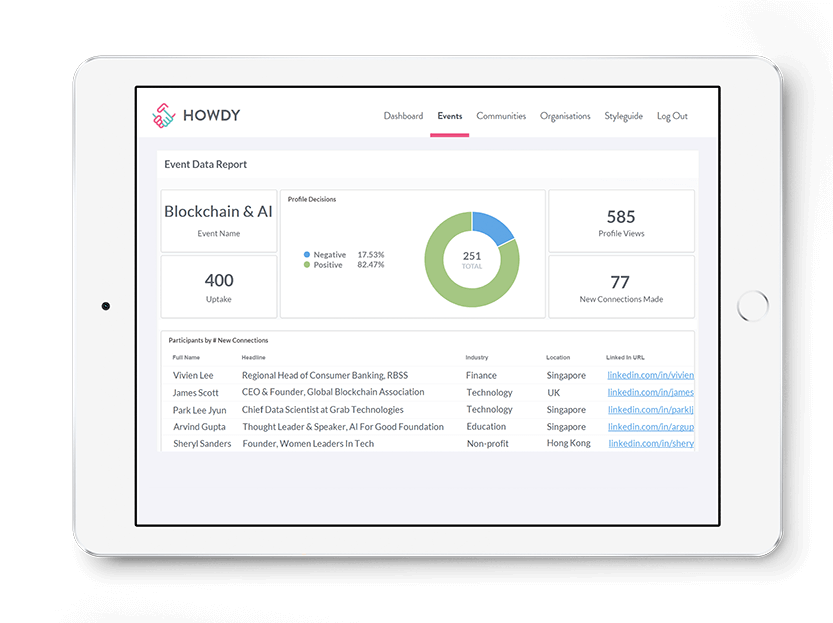 Howdy allows your members to meet the right people and stay connected with you through content and group chats, helping you learn more about them to grow your network.