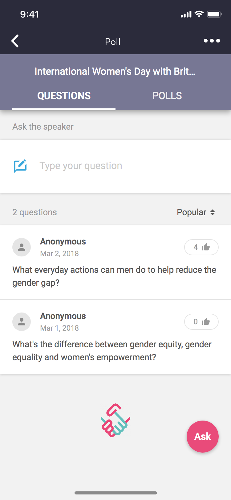 Q&A and polls allow your members to speak their mind at events and vote for questions.